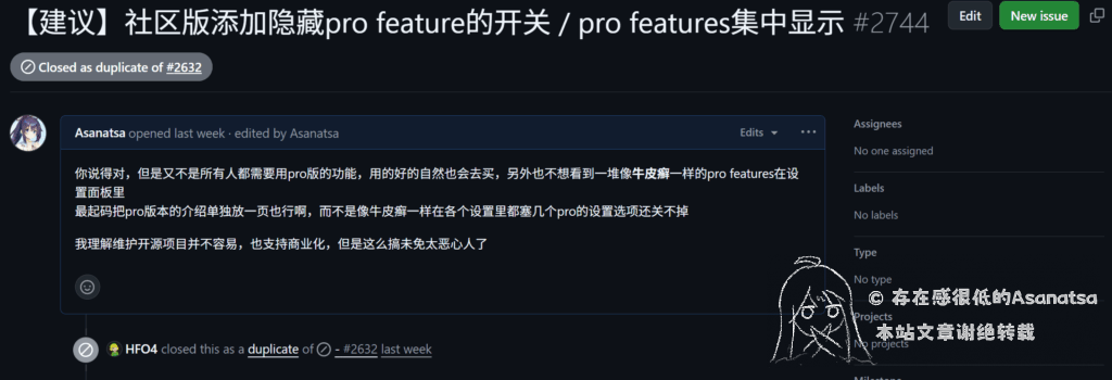 之后在github上发了个issue提了个建议,被标记成重复issue