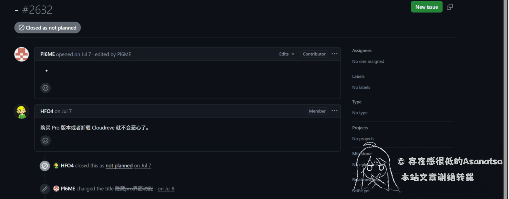之后作者还破防把我挂了,只不过是在我发的issue里🤣